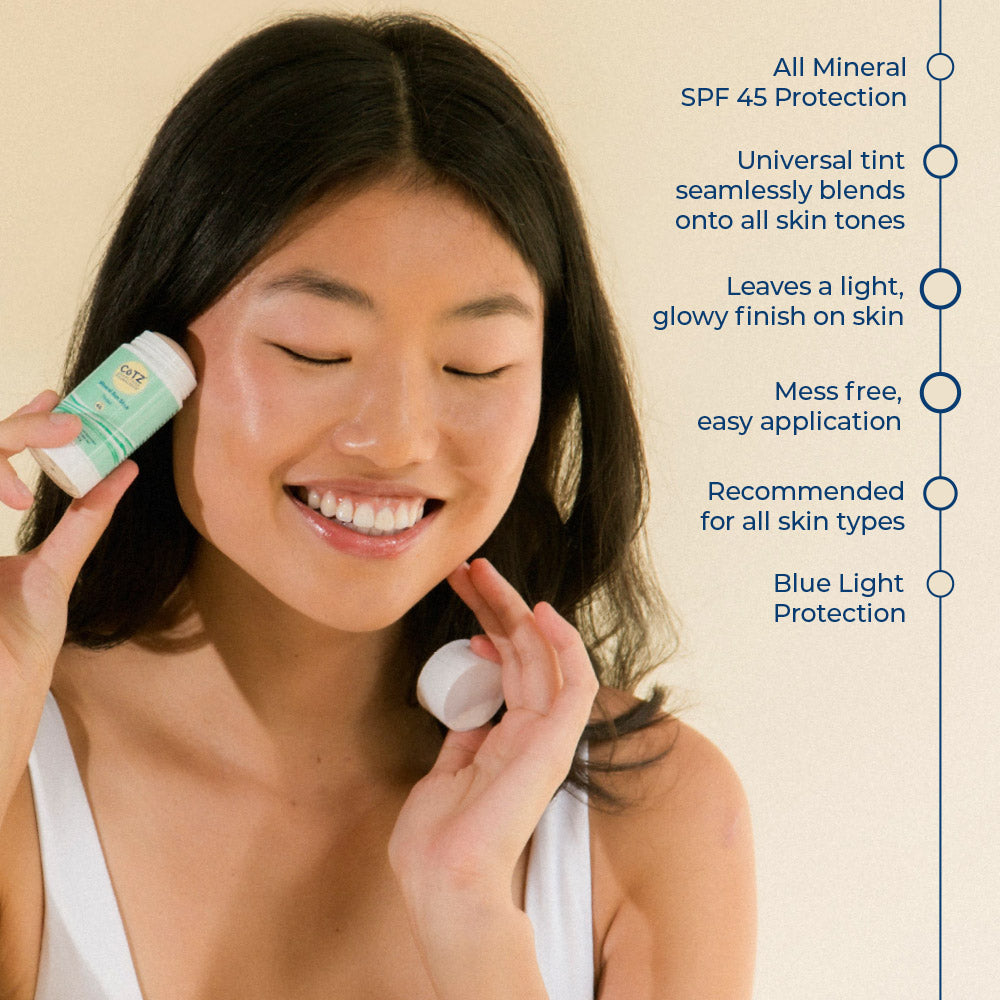 The CōTZ Mineral Sunscreen Stick SPF 45 is compact, portable, and mess-free, making it perfect for quick, easy sun protection wherever you are. Its solid stick design ensures you can swipe it on without the need for messy creams or lotions.